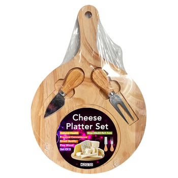 סט גבינה עגול 3 חלקים עם כלי גבינה מעץ לפיצה כולל סכין גבינה וגבינה